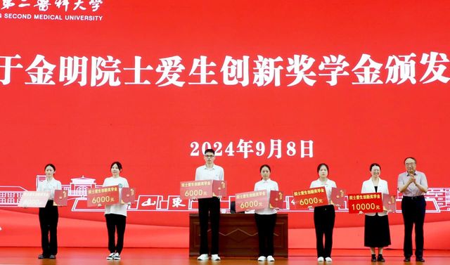 9月8日,学校举行于金明院士爱生创新奖学金颁发仪式,中国工程院院士、我校79级杰出校友、名誉校长于金明为获得“院士爱生创新奖学金”的同学代表颁奖,校长管英俊主持仪式,学校党政领导班子成员出席活动。
